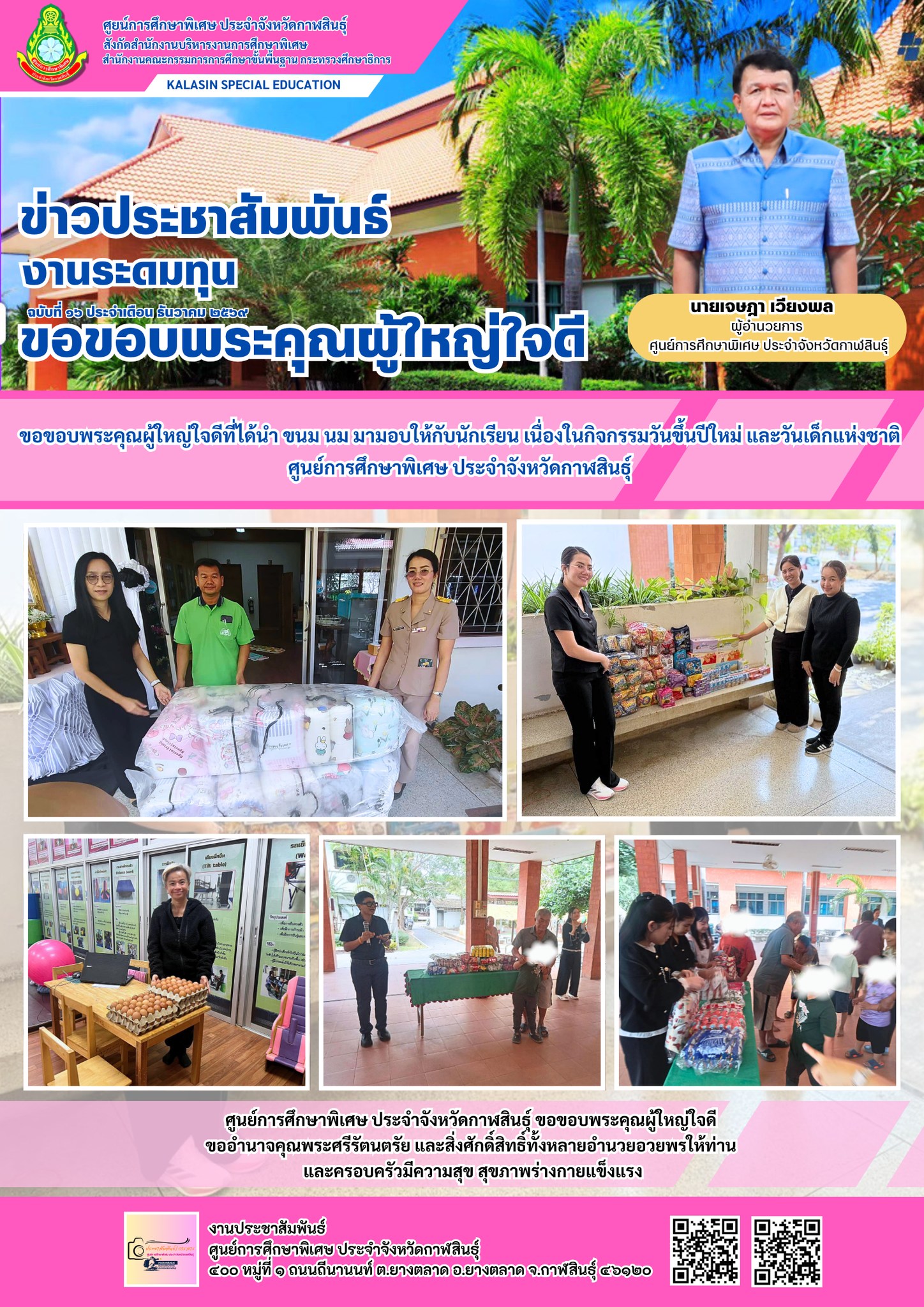 ศูนย์การศึกษาพิเศษ ประจำจังหวัดกาฬสินธ์ุ ขอขอบพระคุณผู้ใหญ่ใจดี