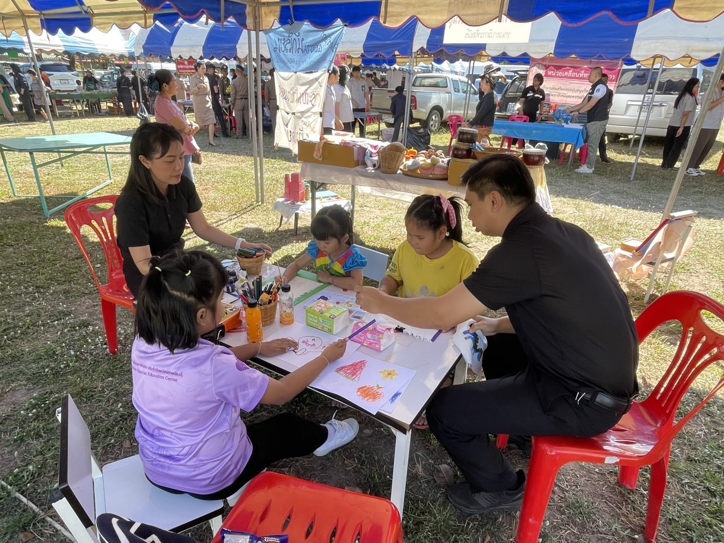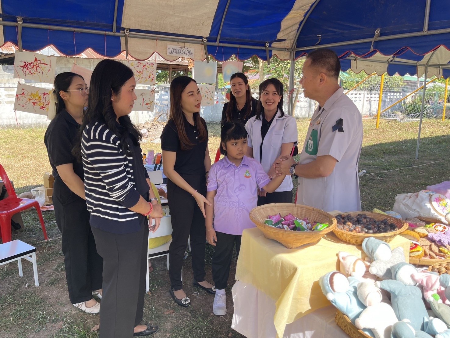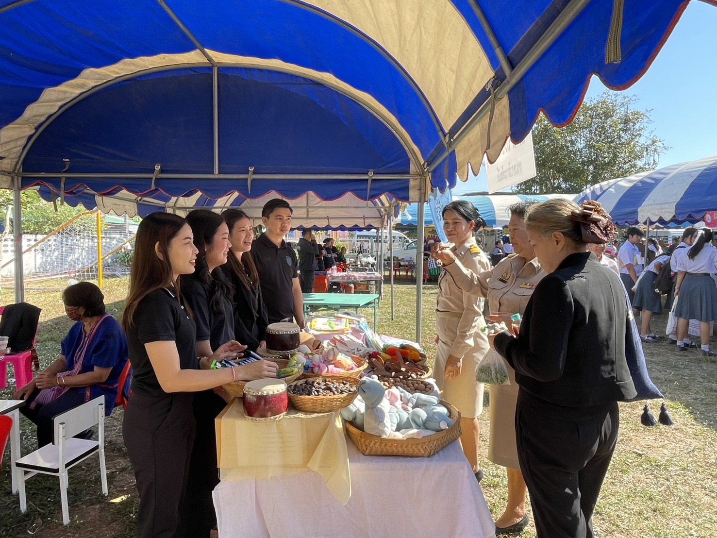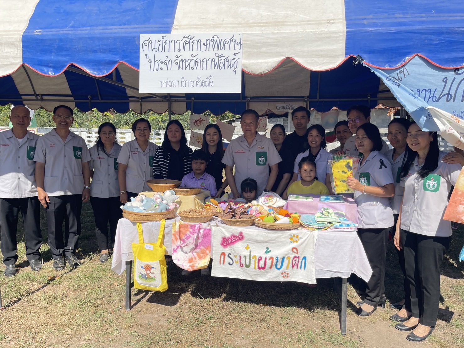 นายเจษฎา เวียงพล ผู้อำนวยการ มอบหมายให้ คณะครู-บุคลากร ประจำหน่วยบริการห้วยผึ้ง เข้าร่วมโครงการหน่วยแพทย์เคลื่อนที่ พอ.สว.จังหวัดกาฬสินธุ์ และโครงการจังหวัดกาฬสินธุ์บำบัดทุกข์ บำรุงสุข สร้างรอยยิ้มให้ประชาชน ครั้งนี้ได้นำเสนอการรจัดการเรียนการสอนตามแนวทางวอลดอร์ฟ สื่อการเรียนการสอนที่ได้ผลิต จากวัสดุธรรมชาติ พร้อมทั้งจัดแสดงผลงานของนักเรียนผลิตภัณฑ์กระเป๋าผ้าและจำหน่าย โดยมี นายผดุงศักดิ์ อิ่มเอิบ รองผู้ว่าราชการจังหวัดกาฬสินธุ์ เป็นประธานในพิธี