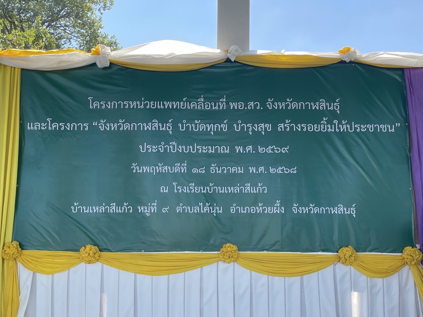 ณ โรงเรียนบ้านเหล่าสีแก้ว ตำบลไค้นุ่น อำเภอห้วยผึ้ง จังหวัดกาฬสินธุ์