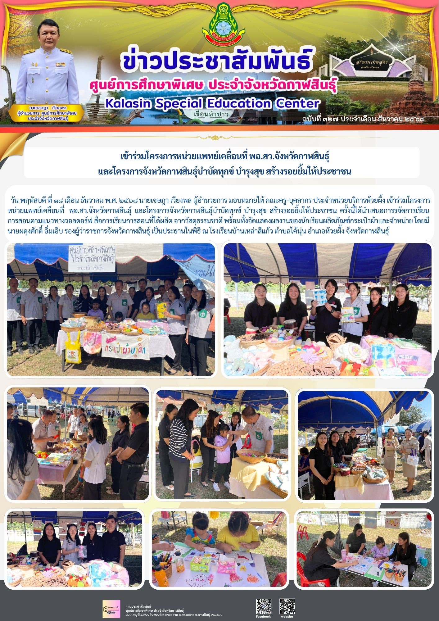 คณะครู บุคลากร ประจำหน่วยบริการห้วยผึ้ง เข้าร่วมโครงการหน่วยแพทย์เคลื่อนที่ พอ.สว.จังหวัดกาฬสินธุ์ และโครงการจังหวัดกาฬสินธุ์บำบัดทุกข์ บำรุงสุข สร้างรอยยิ้มให้ประชาชน