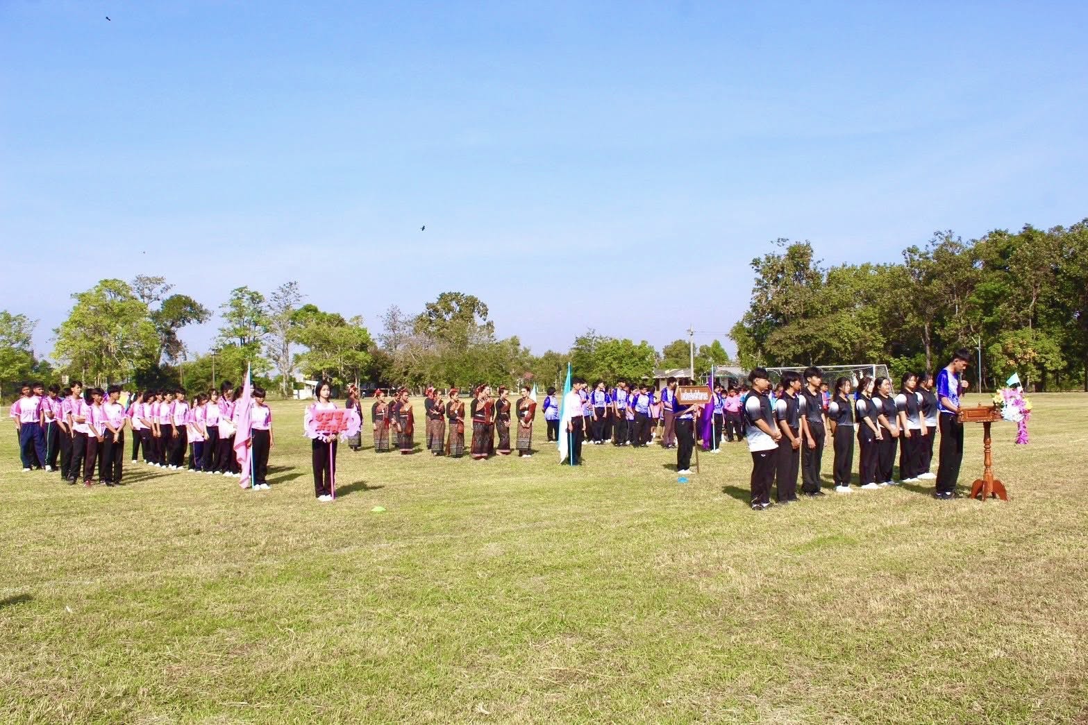 คณะครูหน่วยบริการฆ้องชัย เข้าร่วมพิธีเปิดงานกีฬาสีภายในโรงเรียนฆ้องชัยวิทยาคม