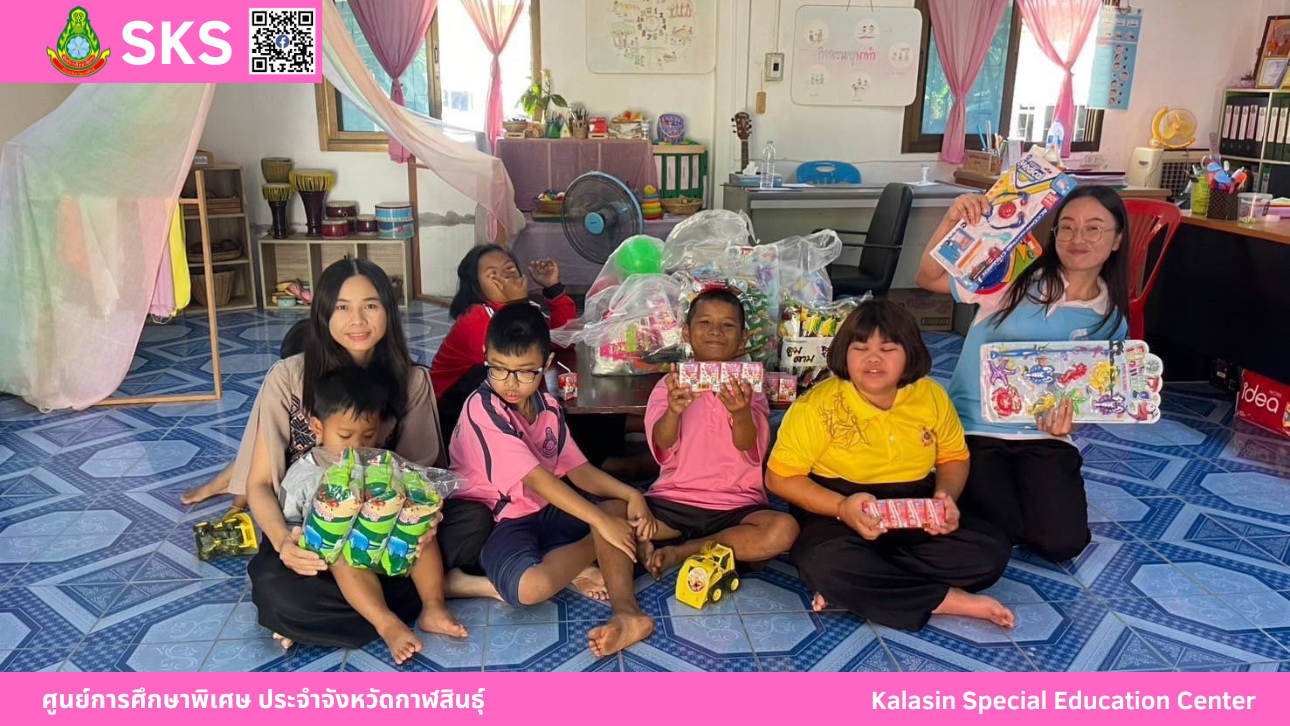 ท่านผู้อำนวยการ วรรณภา ศรีกำพี้ เนื่องในวันคล้ายวันเกิด ได้นำขนม และน้ำดื่มมามอบให้นักเรียนศูนย์การศึกษาพิเศษ ประจำจังหวัดกาฬสินธ์ุ หน่วยบริการฆ้องชัย